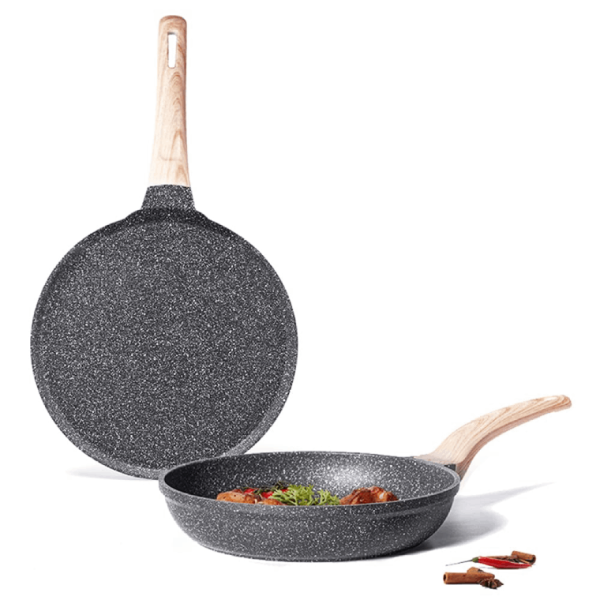 SAFE GRANITE NON-STICK FRY PAN & Tawa Set: Imported PFOA-free non-stick tech makes this pan set a healthier choice. Performance-oriented nonstick material is ideal for perfect frying, browning, searing purposes, and various Indian recipes.