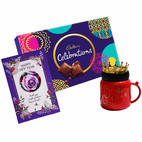 • Sales Package: 1 New Year Greeting Card, 1 Ceramic Coffee Mug with Crown Lid and 1 Chocolate Celebration (Pack of 178 gm).