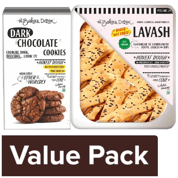 The Baker's Dozen Dark Chocolate Cookies 200 g + Lavash - 100% Wholewheat 100 g